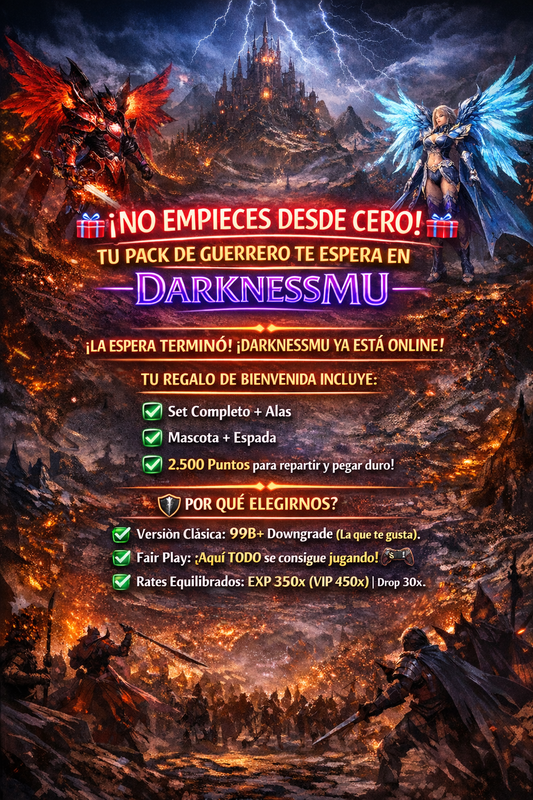 ¡La espera terminó! DARKNESSMU ya está ONLINE y queremos verte pelear desde el primer minuto. Olvídate de levear lento y sin equipo.